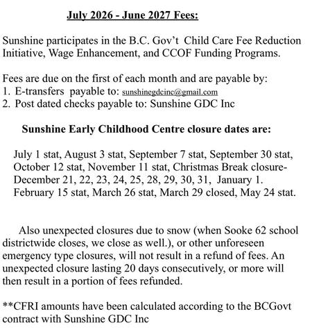 July 1, 2026 - June 30, 2027 Fees: